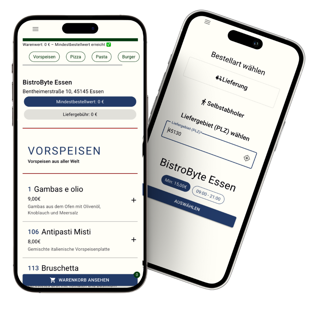 Mit BistroByte steuerst du dein Restaurant digital – unabhängig, provisionsfrei und auf deinem eigenen System.Starte jetzt mit deiner eigenen Bestellplattform und gewinne volle Kontrolle über Kunden, Umsatz und Marke zurück.